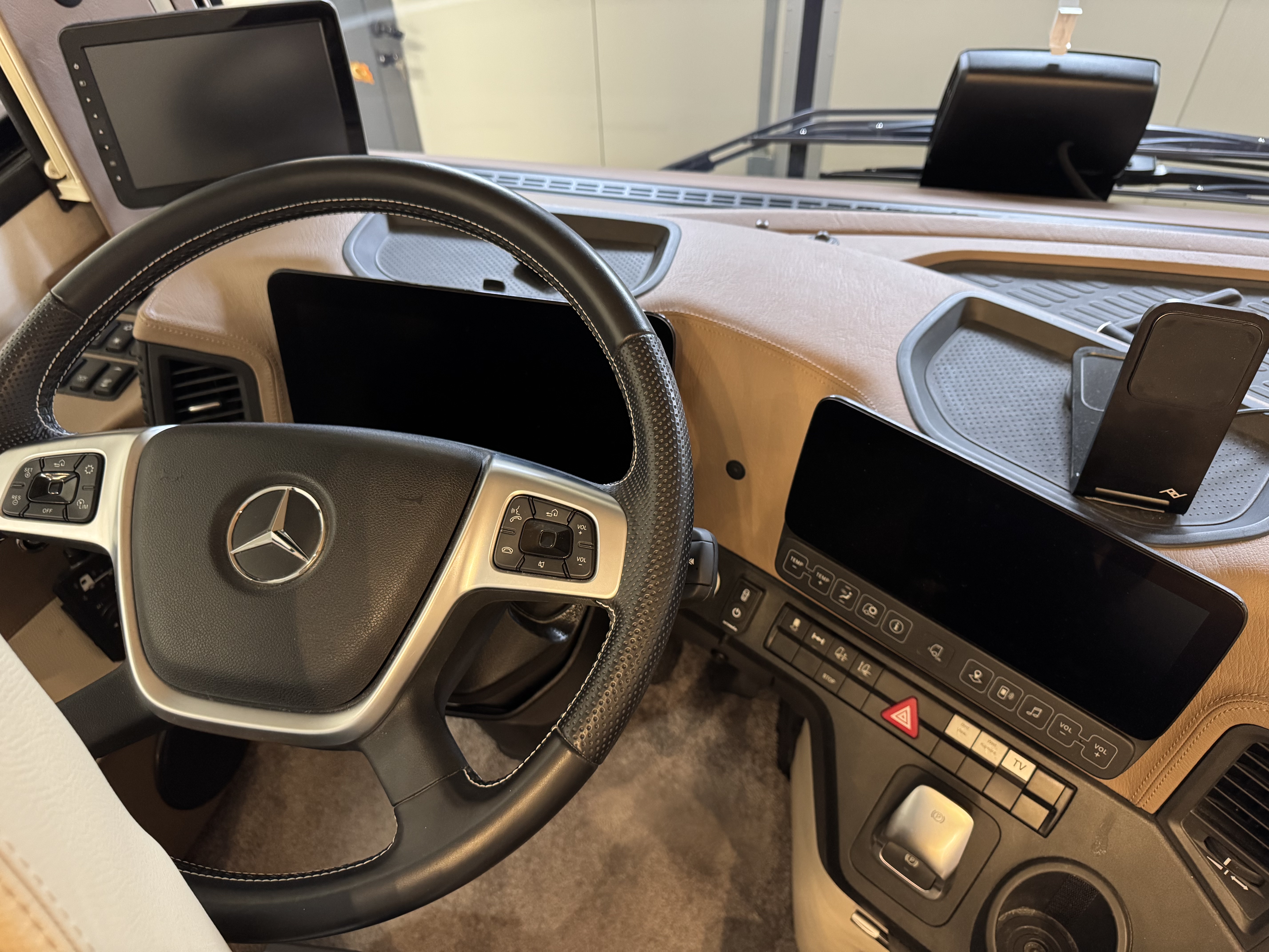 - Vzduchem odpružená, vyhřívaná a odvětrávaná sedadla kabiny