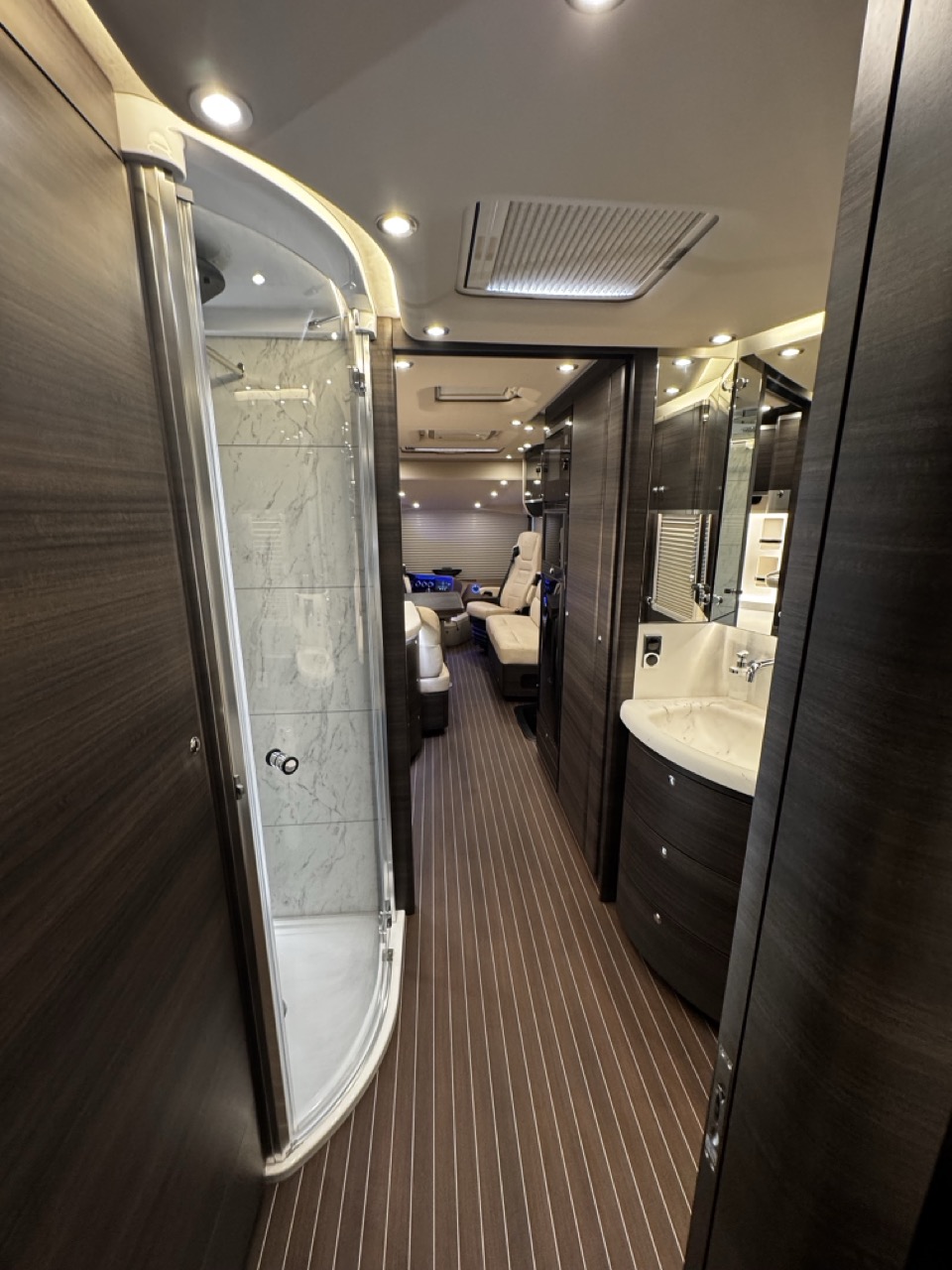 - Centurion Style Paket: venkovní design Centurion style, nábytek v odstínu Atlas Cedr, podlaha Yacht Style, dřevěné žaluzie oken salonu